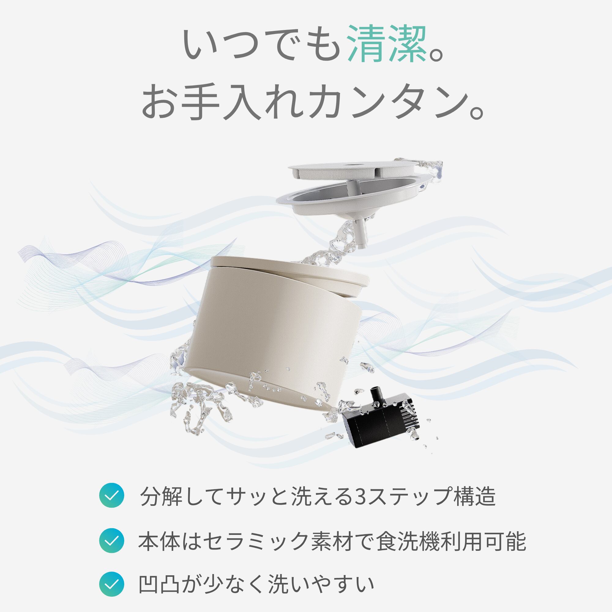 ✅回流式設計: 流れる水を好む猫の習性に合わせた回流式システムを採用